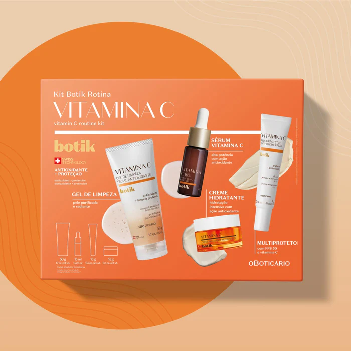 O Kit Botik Vitamina C contém toda a linha, um ritual de proteção e cuidado completo em versão mini. Ideal para quem quer começar esta rotina de skincare sem se comprometer aos produtos full size!